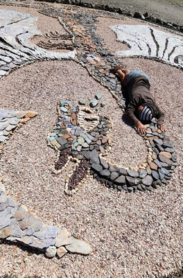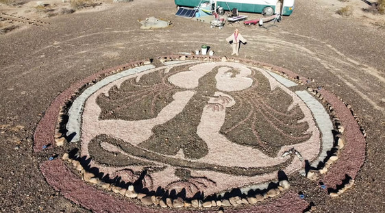 Suzie Q works with multiple elements to recreate various scenes of nature into artistic displays inspired by her travels and healing journey. Well known for her dragons, particularly a large and dramatic display in the Arizona desert that she meticulously crafted over 500 hours within 5 months. Dragons represent transformation and unconscious forces guarding the hidden treasures and truths within, and Suzie Q exemplifies this quite well with her Z-Crafts.